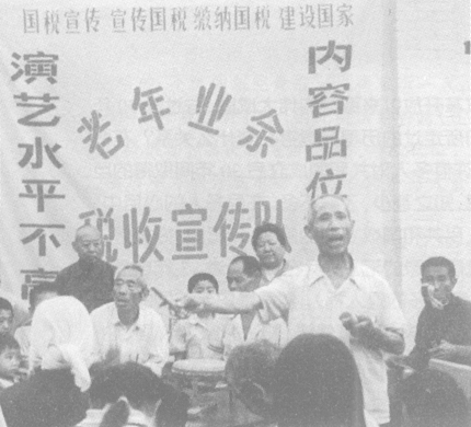 中国税务 2000年 第2期 图片新闻刘文彬文/图 图片新闻 ◎ 刘文彬文/图 上一篇 下一篇 @标图莫改莫删说始@ 山西省平顺县苗庄镇苗庄村有一支由9位老年农民组成的税法业余宣传队。从1994年至今,他们经常走乡串村,不计报酬,栉风沐雨,宣传税法。图为他们正在进行税法宣传。@标图莫改莫删说末@