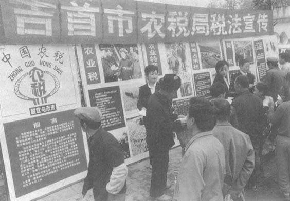 中国税务 2000年 第9期 新闻图片向民航 文/图 新闻图片 ◎ 向民航 文/图 上一篇 下一篇 湖南省湘西土家族苗族自治州吉首市农税局认真宣传农业税收政策,讴歌当地自觉纳税的先进典型及其事迹,利用图片、文字精心制作成宣传板,深入乡镇、集贸市场进行巡回展览。图为他们在墟场展出的情形。