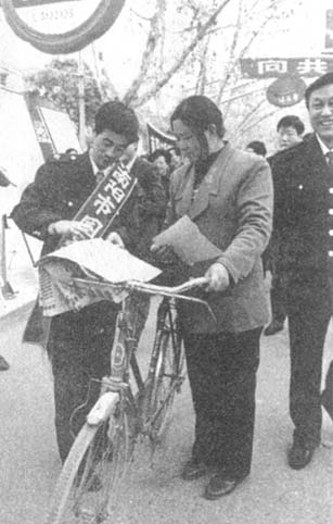 上一篇 下一篇为宣传税收知识,河南省南阳市国家税务局组织了税收宣传一条街活动,共悬挂标语2 000余幅,发放税法宣传材料60 000余份,吸引了广大群众,收到了良好的效果。图为该局税务人员耐心细致地向群众讲解有关税法知识。