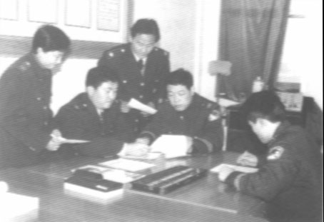 河南省淮滨县地方税务局在县公安机关的配合下,成立“打击涉税犯罪专项斗争联络办公室”,大力开展打击涉税犯罪活动,有效地震慑了犯罪分子,维护了正常的税收征管秩序。图为税务干部与公安干警在认真研究涉税犯罪案件。李志远 陈中海 文/图
