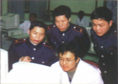 四川省泸州市国家税务局在“金税工程”建设中,高质量地建成了覆盖全市所属单位的计算机广域网络系统,有效地实现了税务机关对纳税情况的严密监控。图为该局领导在指导检测“金税工程”的运行情况。