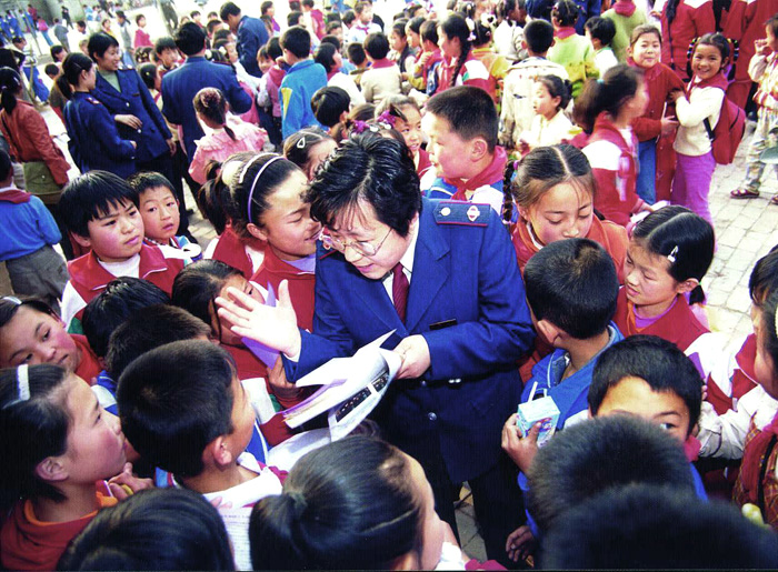河南省濮阳市地方税务局把培养未来纳税人作为一项重要工作抓紧、抓好,税务人员在学生中广泛开展了“学税法、懂税法”活动。图为地税局的同志正在向小朋友宣讲税法。