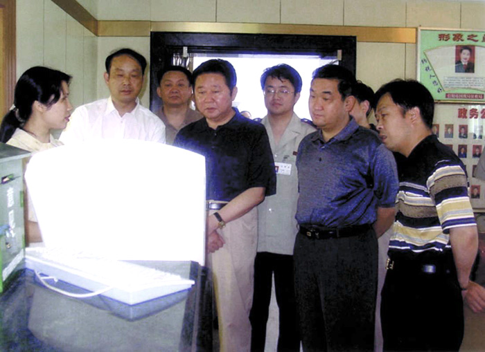 河南省信阳市国家税务局积极利用科技手段,提升服务质量。该局自行研究开发出的税收信息服务系统,受到纳税人的欢迎。图为信阳市委书记李中央带领市委有关领导到征收服务大厅考察了解这一系统的各项功能。