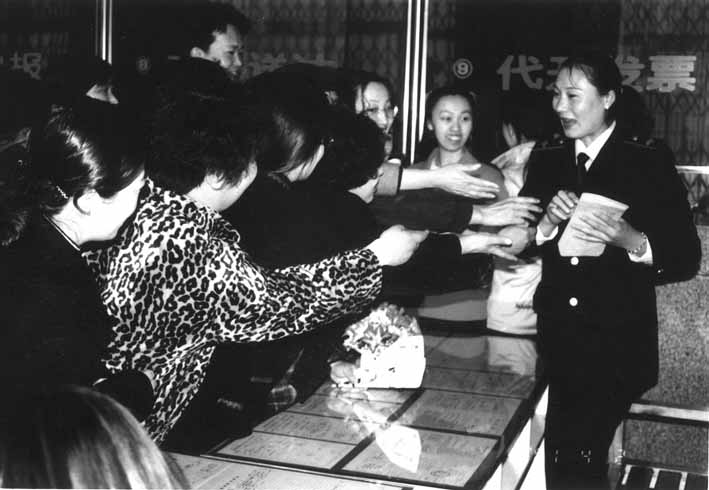 吉林省白山市国家税务局征收分局采取了一系列灵活多样、生动活泼的形式开展税收宣传活动。图为广大纳税人在积极参加该局组织的税收知识有奖问答活动。