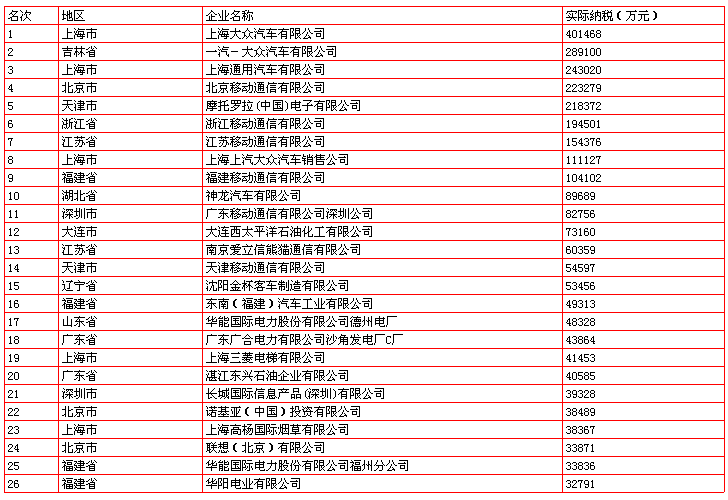 2002年度中国外商及港澳台商投资企业纳税百强排行榜