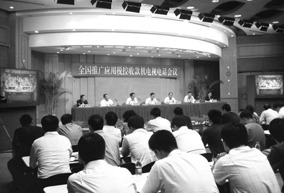 7月19日,国家税务总局、财政部、信息产业部、国家质检总局联合召开全国推广应用税控收款机电视电话会。国家税务总局局长谢旭人、财政部副部长廖晓军、信息产业部副部长娄勤俭、国家质检总局副局长王秦平到会讲话,对税控收款机的推广应用工作进行全面动员和部署。国务院副秘书长尤权出席了会议。