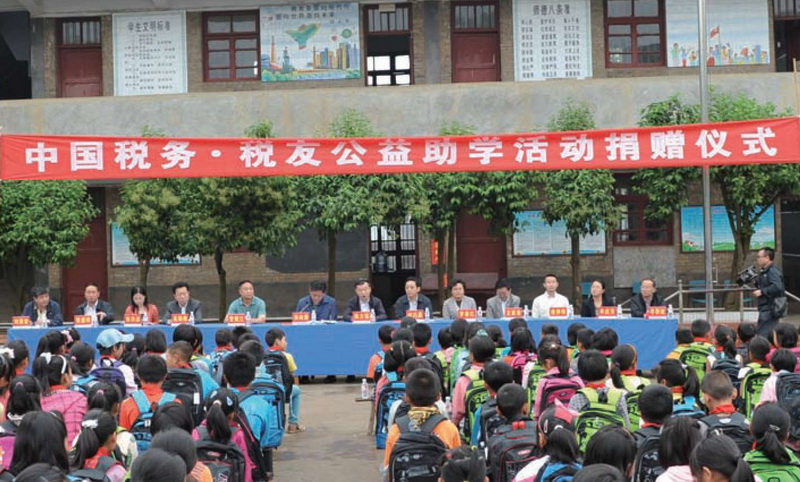 2014年5月30日,中国税务杂志社、贵州省国税系统和税友集团、湖南神采飞扬体育文化传播有限公司赴普安县开展税务公益助学活动,向普安县窝沿乡上寨小学提供了价值50.88万元的教学硬件设备、饮用水设备,帮助上寨小学建立起电教室、图书室,解决了师生们的饮水及净水问题,援建并长期扶持一个素质教育课堂——“税务助学空间站”,帮助学校改善教学环境。