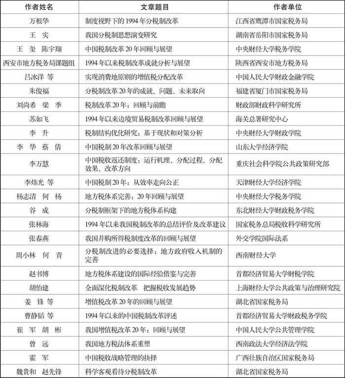 “1994年以来税制改革回顾与展望”征文评选结果