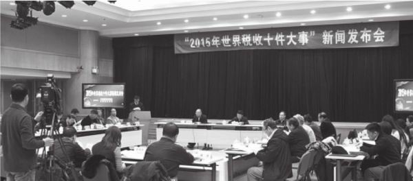 新闻发布会由中国国际税收研究会副秘书长彭宁主持。王力会长首先做了题为《把握世界税收发展趋势 增强大国税务话语权》的讲话。他指出,2015年,全球经济格局深度调整,世界税收领域大事不断,世界税收事件的蝴蝶效应和新闻价值日益凸显。这些事件,体现了世界税收领域的重大改革和发展变化,具有鲜明的国际特色和年度特征,既是重大的税收新闻,也是典型的国际大事。例如g20峰会批准应对beps行动计划成果等,体现了国际社会在全球税收治理与反避税合作中的重大进展。同时,中国在国际税收舞台上的话语权和影响力日益增强,发挥着越来越重要的参与和引领作用。例如“金砖国家”领导人会议发表《乌法宣言》,中国国家税务总局局长王军提出“对跨国公司灰色利润和避税零容忍”的倡议,得到一致认可和积极响应;以及中国发布反避税新规,受到各国普遍关注,等等。这些重大事件,将带领我们共同回顾和重新审视2015年不同寻常的国际税情税事,品读过去,开创未来。