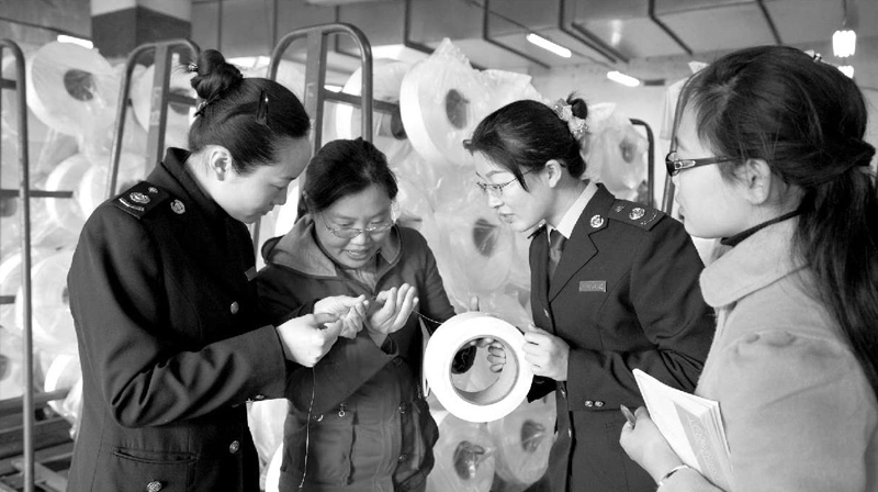 江苏省新沂市国家税务局在纺织、化工、钢铁三大行业开展重点税源调查活动。图为税务干部在纺织企业了解生产情况。