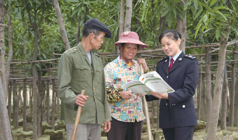广西壮族自治区田阳县国家税务局深入农户宣传解读涉农税收优惠政策。