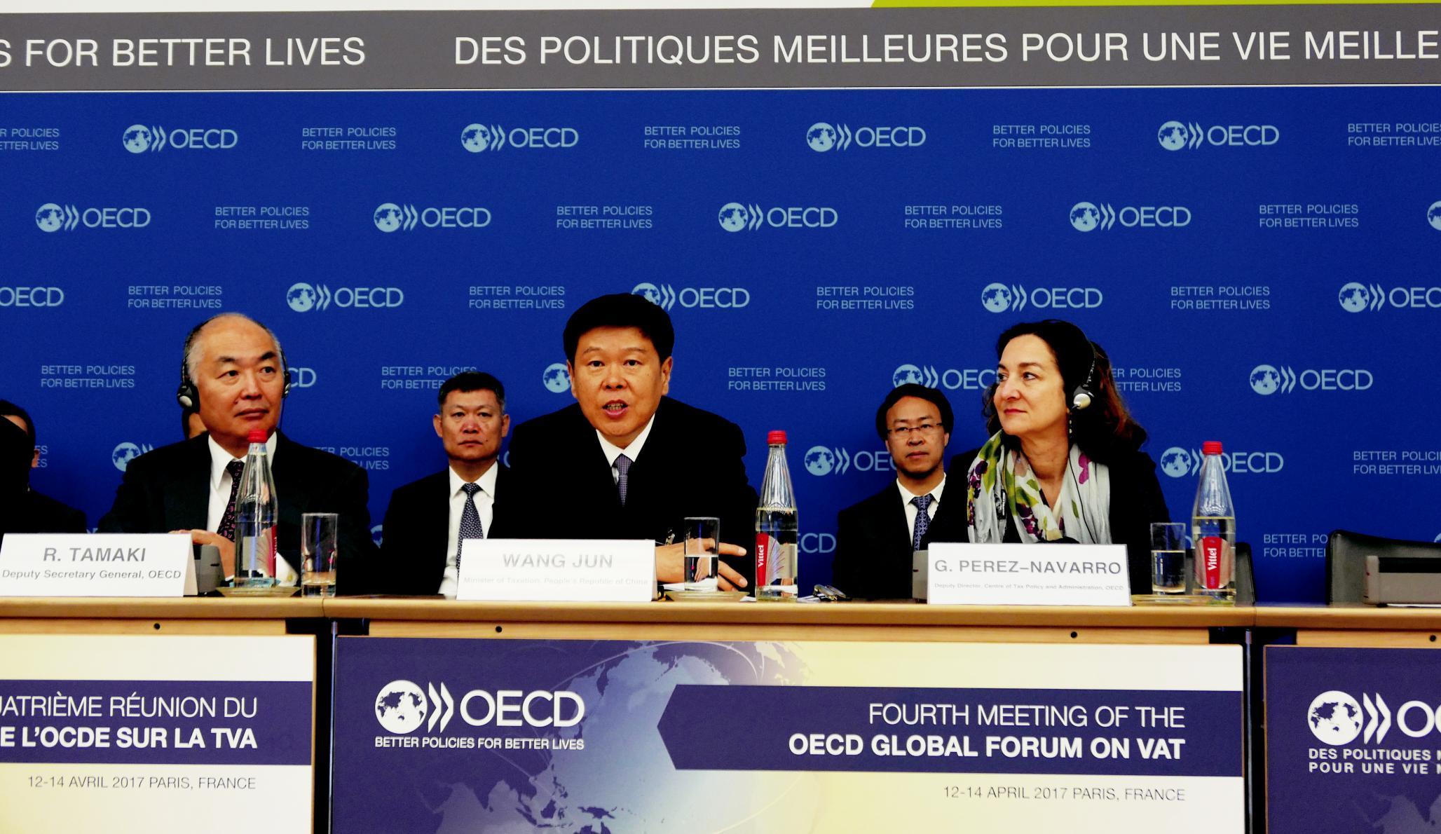 本刊讯 4 月12 日~14 日,经济合作与发展组织(oecd)第四届增值税全球论坛在法国巴黎举行,中国国家税务总局局长王军应邀出席并代表中国税务部门作主旨发言,介绍中国推行营改增的做法和经验。王军表示,作为世界第二大经济体,中国全面推开营改增试点既是当前大力推进供给侧结构性改革的战略举措,又是立足长远打造增长友好型税收体系的重大实践,彰显了中国推进国家治理体系和治理能力现代化的决心和成效。