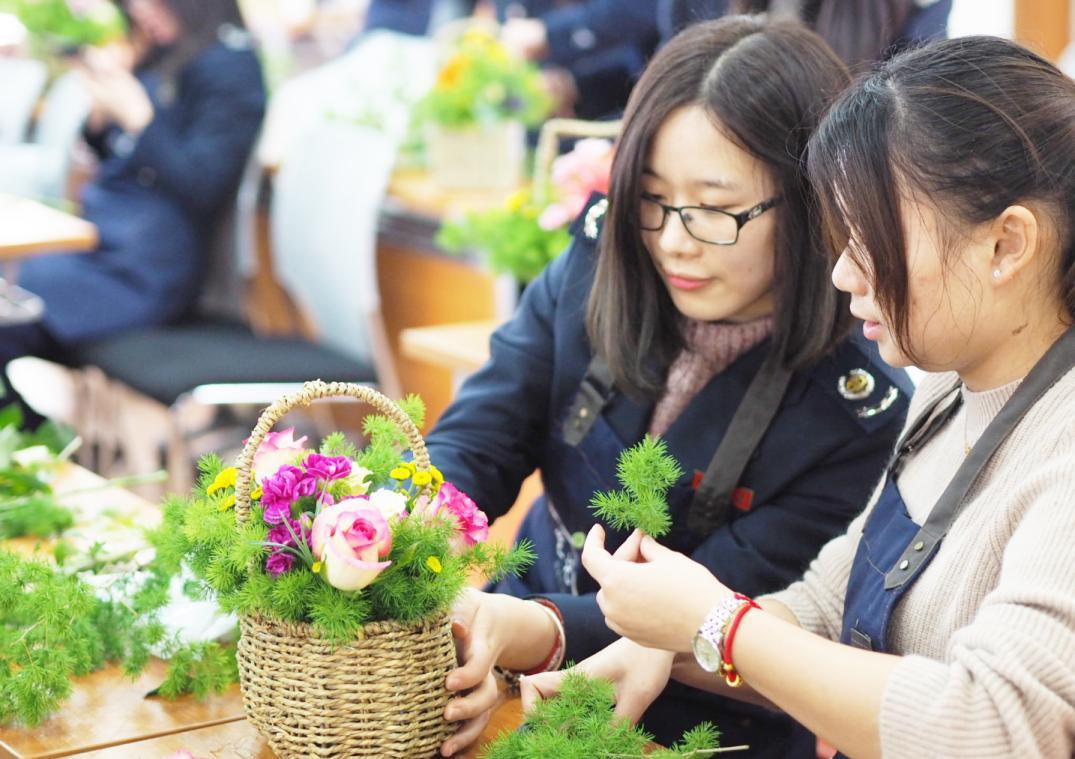 浙江省杭州市拱墅区国家税务局组织女干部开展“一花一世界”插花体验活动,庆祝“国际劳动妇女节”。