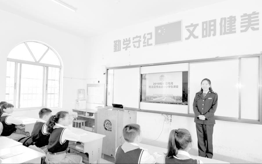 江苏省泰州市国家税务局、地方税务局联合开展税法进校园活动,为孩子们讲解税收知识。 许耀明 文/图