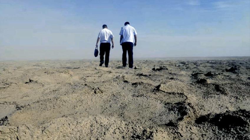 20 世纪末,中国地质科学院工作人员在罗布泊勘测到一处大型富钾卤水矿,储量达2 亿吨。2000 年9 月,随着国投新疆罗布泊钾盐有限责任公司(以下简称“罗钾公司”)成立,罗布泊成为世界最大的硫酸钾生产基地。国家税务总局若羌县税务局驻罗布泊税务服务站随之建立,服务罗布泊境内从事道路、电网等建设的企业。在这儿,我们邂逅了税务老兵潘建伟和他的“90 后”徒弟徐瑞。