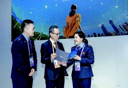 上海税务青年在第六届进博会现场为客商提供咨询服务