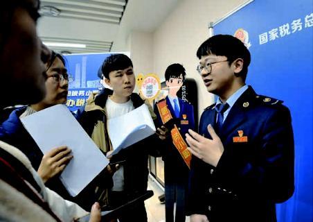 陈亮(右一)为纳税人缴费人答疑解惑