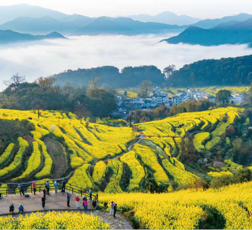皖浙赣三省交界、五县(市)接壤赋予了婺源特殊的文化、地理和人文风貌——漫山金黄色的花海、白墙黛瓦间的烟火气、沧桑古朴的小桥流水人家……“向往的生活”在这里走进了现实,再完美的调色盘都画不出如此的惬意,“江浙沪包邮区”乃至全国各地的游客慕名前来一解乡愁。