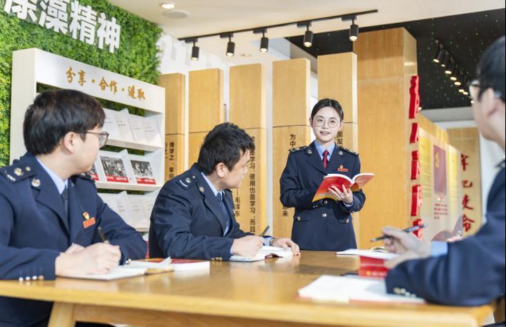 国家税务总局重庆市税务局第一稽查局结合当地红色资源,开展“青年与理论对话”,引导青年纪检干部更好履职尽责 郭睿 摄