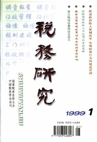 1999年 第1期 论坛 推进政府收入体制改革实现收费行为的规范管理 韩绍初 论提高财政收入占GDP比重的策略 杨斌 知识经济与税制优化 邓力平 詹凌蔚 规范我国税费运用形式的研究 (论文摘要) 本刊专稿 关于《税务研究》近年来的工作及下一步的打算 张木生 《税务研究》编委会工作会议在北京召开 税制建设 完善增值税问题的研究报告 中国税务学会《完善增值税问题》课题组 我国出口退税制度的现实选择* 中国税务学会《出口退税问题》课题组 税收政策:证券市场发展中的稳定机制 方向阳 来稿摘登 税制建设方向之我见 梁键 征收管理 借鉴国外经验规范对小企业纳税人的征收管理 张炜 省级地方税务管理信息系统的开发与应用 徐刚 潘向捷 粮食流通体制改革对农业税收征管的影响 胡栓林 张国清 工作研究 谈企业兼并、破产的欠税问题 孙文连 税收与法制 税收立法权的协调 彭三 阎东玲 论税务行政强制执行 傅红伟 外国税收 荷兰税收征管特征及启示 邓小洋