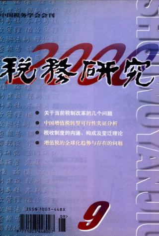 2000年 第9期 论坛 关于当前税制改革的几个问题 中国税务学会《税制改革》课题组 关于国有企业总体税负水平的数量分析 《国企非国企税负公平问题研究》课题组 抓住城市化加速的机遇探寻新的税收增长点 吴邦金 刘燕 本刊专稿 中国增值税转型可行性实证分析 陆炜 杨震 来稿摘登 强化个人所得税职能的几点建议 李日胜 改进企业所得税纳税调整、弥补亏损办法的设想 修伟 曾先容 税制建设 深化增值税改革的可行性 四川省国际税收研究会课题组 关于我国建立环保税制的研究 中国税务学会《环保税制》课题组 改进完善我国环境税制的探讨 贾康 王桂娟 基础理论 税收制度的内涵、构成及变迁理论 高莉 社会主义市场经济条件下的税收调控与税收中性 曲顺兰 朱庆民 局长论坛 促进县域经济发展的理性思考与税收对策 戴子钧 实行“领导干部末位淘汰制”创新干部管理制度 宋德晋 征收管理 税收征管效率问题初探 陶东元 魏贵和 胡孝伦 试论税务稽查职能的实现 赵峻 调查报告 改制企业“两税”管理亟待加强 ——关于安徽省改制企业税收问题的调查 汪康 曹剑 宋健 工作研究 深化分税制改革的探讨 段启华 我国税务代理业发展思路浅议 尹立颖 外国税收及借鉴 增值税的全球化趋势与存在的问题 张文春