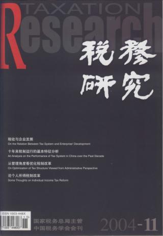 2004年 第11期 本刊特稿 税收与企业发展 论坛 十年来税制运行的基本特征分析(*) 郭庆旺 吕冰洋 从管理角度看优化税制改革 高莉 中性财政政策下的新一轮税制改革 马蔡琛 税制改革 消除股息经济性双重征税的现实制度设计 刘丽坚 江一钦 论个人所得税制改革 郝硕博 商尚 史晓军 臧莹 个人所得税制优化与管理创新 匡小平 肖建华 林颖 建立个人所得税费用扣除体系的设想 李斌 我国个人所得税税制模式的改革 李志远 个人所得税模式转型及其相关问题的研究 蔡德发 王曙光 税收法治 税收法治化的实现方式 胡立升 从征税人的博弈分析看依法治税 刘国庆 论《税收基本法》的价值定位 王世涛 局长专栏 对增值税转型中财政减收问题的探讨 董树奎 提高基层税务工作执行力的思考 刘崇俊 调研分析 税收征管改革的回顾与完善 ——以深圳市国税局征管体制发展变化为例 深圳市国家税务局课题组 税务管理 会计准则的全球趋同与税务会计模式的动态分析 叶建芳 论我国税务会计与财务会计的适度分离 王华明 税收与会计关系模式的选择与税收监管 李心源 戴德明 工作探索 论进货退出或销售折让的税收管理 梁志 管佐馀 完善税收优惠政策和管理机制的思考 许可 吴强胜 何夏军 税收征管效率影响因素评析 应亚珍 陈洪仕 香港汇率制度现状与未来选择(*) 周秀云 李心丹 刘铁军 刘瑛 税史研究 新中国印花税票概览与评析 饶立新 曾耀辉 论文摘萃 个人所得税税源监控管理方法探索 许永平 王 男 增值税结算退库审核应注意的几个问题 王瑶文 潘善考 戴卫表 关于完善税收管理员制度的探讨 郦晓良 傅恒茂 许银奎 加强税收政务协作 李伟健