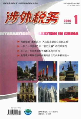 2010年 第1期 卷首语 新年致辞 郝昭成 构建和谐 激发活力 大力促进研究会创新发展(*) 郝昭成 财税观察 一次“一举多得”且“多方共赢”的改革实践 ——写在“成品油税费改革”一周年之际 高培勇 研究与探索 关于进一步完善结构性减税政策的研究 杨卫华 运用税收政策 提升消费需求 匡小平 席卫群 调结构、扩内需的税收政策分析 禹奎 段玉平 刺激消费的财税政策选择 陈旭佳 冯海波 税收政策对企业投资的影响(*) 陈平路 陈波涛 图片新闻 图片新闻 谢升焱 王越 图片新闻 李晓东 李炳旺 开放的中国 我国改革开放后涉外税制的建立与内外税制统一 刘佐 各国税收纵横 澳大利亚纳税服务经验及对我国的启示 王华君 碳税的国际经验与借鉴 杨杨 杜剑 法规选登 最新法规 (2009年11月1日~2009年11月30日) 国家税务总局发布《非居民享受税收协定待遇管理办法(试行)》 案例点评 加拿大对中国半导体冷热箱实行贸易救济调查案述评 黄文旭 欢迎订阅:《中国税务》《税务研究》《涉外税务》 调查与思考 对基层纳税服务能力的调查与思考 许光烈 税收实务 对我国有关所得来源地判定标准修改的建议 吴永求 外国企业常驻代表机构税收管理探析 李 涛 对跨国独立劳务所得认定的探讨 徐妍 研究会动态 中国国际税收研究会通报表彰第六次国际税收优秀科研成果 中国国际税收研究会通报2009年全国国际税收调研课题开展情况 中国国际税收研究会表彰一批全国先进国际税收研究会 税收与生活 税务人的税收思维 尧艳 《涉外税务》撰稿须知 税事回眸 税事4则