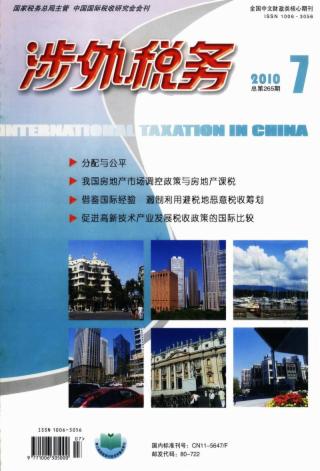 2010年 第7期 卷首语 导读 财税观察 分配与公平 刘尚希 我国经济刺激政策退出的时机与步骤(*) 陈华 赵俊燕 图片新闻 图片新闻 刘燕明 图片新闻 陈庆贵 王奎 图片新闻 李同学 王德玉 李伟 图片新闻 董冬 研究与探索 我国房地产市场调控政策与房地产课税(*) 岳树民 我国开征物业税的产权制度障碍与改革建议(*) 唐明 试论我国物业税的功能定位 杨金亮 杨鹏 我国开征物业税的意义及现实评述 张青 我国现行房地产税制存在的问题及开征物业税面临的困难 郑惠霞 国际税收 借鉴国际经验遏制利用避税地恶意税收筹划 徐海荣 王真 税务信息交换协定与国际税务合作 张文春 曲卓 各国税收纵横 促进高新技术产业发展税收政策的国际比较 上海市国家税务局课题组 美、日两国财产税制建设经验及借鉴 贾敬全 韩国遗产税制研究及启示 方东霖 法规选登 最新法规 (2010年5月1日—2010年5月31日) 国家税务总局印发《非居民企业所得税核定征收管理方法》 案例点评 滥用税收协定规避个人所得税的案例评析 孟咸华 乔苏平 王涵彦 税务与会计 消费型增值税下的固定资产涉税会计核算 柳建启 我国企业所得税会计核算的演进 王华明 税收实务 加强跨国税源监控的几点思考 孙长举 赵德芳 浅析建立和完善基层税源监控体系的对策 朱晓庆 王吉武 税务部门执法质量评价体系的构建的构建 刘合斌 税事回眸 税事4则 税收与生活 从奥巴马的报税单看美国个人所得税制度(*) 刘植荣 研究会动态 “现代型增值税的国际借鉴研究”课题开题研讨会在合肥召开 陈双专