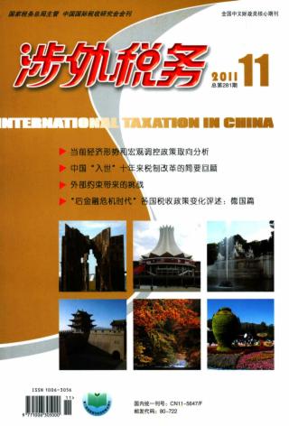 2011年 第11期 卷首语 导读 财税观察 当前经济形势和宏观调控政策取向分析 丛明 图片新闻 图片新闻 闫士亮 陈静 图片新闻 胡志海 图片新闻 邹建军 金晓扬 特别策划 中国“入世”十年来税制改革的简要回顾 刘佐 外部约束带来的挑战 ——对世贸税收应对工作的思考 丁毅 段志伟 中美“双反措施”WTO争端案述评 黄文旭 深圳:WTO事务工作体系示范全国(*) 陈俊峰 福建:“入世”十年我们的国家我们的税 许云峰 蔡青青 陈光平 浙江:“入 世”十年本土企业与政府部门共成长(*) 金淑兮 王敏志 江苏:“入 世”十年话巨变 孙亚华 研究与探索 关于改革我国房地产税制的构想 石坚 刍议我国土地增值税改革取向 方东霖 借鉴国际经验完善我国财产税税权分配 陈旭佳 冯海波 浅议我国奢侈品相关税收政策(*) 白彦锋 马沛迪 汪进贤 推进城乡一体化建设的税收政策研究 唐晓鹰 国际税事评说 “后金融危机时代”各国税收政策变化评述:德国篇(*) 罗秦 龚辉文 欢迎订阅:《中国税务》《税务研究》《涉外税务》 各国税收纵横 欧美各国银行税方案比较 陈旭东 张樱 英国反资本弱化税收实践中对独立交易原则的运用 周秀梅 法规选登 最新法规 (2011年8月1日~2011年9月30日) 《中华人民共和国车船税法》将自2012年1月1日开始实施 欢迎投稿 税务与会计 房地产开发间接费用的会计核算与税务处理 唐维模 宋世高 我国企业无形资产会计核算的演进 王华明 税收实务 对改进办税服务工作若干问题的思考 汤钧 刍议运用数据分析系统防范税收管理风险 王一民 研究会动态 “税收鼓励战略性新兴产业发展的国际借鉴研究”课题结题会在上海召开 金亚萍