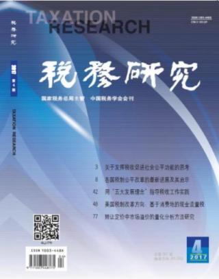 2017年 第4期 财税论坛 关于发挥税收促进社会公平功能的思考 计金标;庞淑芬 各国税制公平改革的 最新进展及其启示(*) 马蔡琛;苗 珊 中国税制转型与促进社会公平(*) 何代欣 我国间接税的归宿与收入再分配效应(*) 尹音频;闫胜利 关于个体网络借贷公司 纳税状况的调研报告 北京市国 地税网络借贷课题组 P2P 网络借贷行业税 收征管研析 颜凌云 建立促进P2P 网络借贷发展的税收法律制度(*) 赵 玲 本刊特稿 用“五大发展理念”指导税收工作实践 郭晓林 税制改革 美国税制改革方向:基于消费地的现金流量税 刘 怡;侯思捷;黄钇淼 马克思产权理论视角下的资源税费改革(*) 李英伟 资源税改革中的租、 税、费关系 张德勇 财税法治 浅议税务行政争议解决机制 刘运毛 关于税收利息制度若干问题的探讨 王语心;王耀鑫;王根富 案例分析 由一起案例看西部大开发企业所得 税优惠政策的执行 张佩峰 环球税收 转让定价中市场溢价的量化分析方法研究 张 盛;刘 建;莫 铌 关联交易、资本弱化与反避税机制(*) □ 汤湘希 沈将来 陈明进 汪瑞芝 欧盟五成员国个人所得税制度分析与借鉴(*) □ 刘柏惠 财税史鉴 从博弈论视角再议英国所得税的滥觞 □ 王文素 梁长来 古代重大财税改革与营改增的共性 □ 郭 祥 研究探索 财政补贴、税收优惠与战略性新兴产业专利产出(*) □ 储德银 纪 凡 杨 珊 高新技术产业税收优 惠政策效应分析 □ 重庆市税务学会课题组 企业重组个人所得税政策:理论审视与改革完善 □ 李 辉 新形势下地方税体系重构路径探析(*) □ 刘天琦 李红霞 刘代民 “互联网+”税务信息化生态系统的发展策略 □ 广东省中山市国家税务局课题组 税收管理 探索国地税融合下的 “互联网+税务”模式 □ 杭州市地方税务局课题组 企业破产重整中税收债权清偿的政策建议 □ 卿 云 周芯竹 杨锦成 对营改增后税收管理 面临挑战的几点认识 □ 冷文娟 李 伟