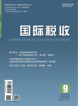 2021年 第9期 本刊特稿 数字经济、价值创造和财富分配* ——基于税收视角的分析 张志勇 励贺林 专题策划 助力高质量发展的税制体系改革 杨灿明 ﹡ 以有效提供地方公共服务为中心:从健全地方税体系到健全地方政府融资体系 杨志勇 税制结构的国际比较及中国选择 倪红日 完善我国直接税体系的分析与思考 梁季 陈少波 跨境税收 论《双支柱框架协议》立法目的之变动与影响* 朱晓丹 曹港珊 OECD 支柱二方案:挑战与应对* 崔晓静 刘渊 研究探索 数字经济税收转移:机制、现状及国际经验借鉴* 袁从帅 赵妤婕 税收实务 中国企业跨境并购的税务风险识别与应对 巴海鹰 谭伟