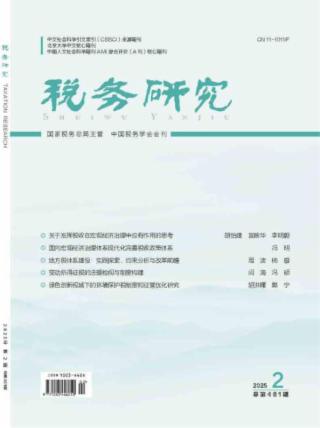 2025年 第2期 专题策划 | 高质量推进中国式现代化税务实践 关于发挥税收在宏观经济治理中应有作用的思考 胡怡建 宫映华 李明蔚 税收推动宏观经济治理体系现代化:职能定位、现实挑战与优化路径* 薛钢 刘怡婉 吴璟 面向宏观经济治理体系现代化完善税收政策体系* 冯明 税制改革 地方税体系建设:实践探索、约束分析与改革前瞻* 周波 杨璇 深化新一轮地方税体系“统筹与自主”改革* 谢贞发 杨思雨 新一轮财税体制改革背景下的地方税体系建设构想 方胜 袁欢 杨宁 “数字经济与税收治理”征文 范式理论视角下算力赋能税收征管数字化转型的思考 王玺 刘茹 专门税与传统税的辩争:数据税立法模式的体系性检思* 褚睿刚 税收法治 变动所得征税的法理检视与制度构建* 闫海 冯硕 增值税骗税行为司法认定的二元路径及行刑衔接* 刘荣 韩凤艺 我国税务规范性文件的溯及力* ——从实践分析到规范建构 贺燕 韦国庆 环球税收 全球最低税的倒逼机制、规则导向与应对之策* 励贺林 李凌锋 姚丽 软硬权力结合下的“双支柱”方案:不同行为体博弈分析 冷雪昊 研究探索 环境税收对污染排放与经济增长的影响* ——基于面板数据和门槛模型的实证研究 刘磊 周阳 研发费用加计扣除政策对企业劳动力结构的影响 刘婉婷 杨杨 个人所得税政策对居民生育的影响及优化* 司言武 韩一多 张自力 增值税留抵退税对民营企业ESG表现的影响研究 田芳菲 苗诗扬 许英杰 调查研究 远洋船员个人所得税优惠政策的实施效果及优化建议* ——基于主要航运企业和远洋船员的调研 黄燕飞 李萌宇 周卫华 高质量发展行业引领力测度模型及应用 ——基于湖南省涉税数据分析视角 杨艳 张新波 税收管理 绿色创新视域下的环境保护税制度和征管优化研究 胡洪曙 郭宁 税收共治视角下平台经济灵活就业人员个人所得税征管问题研析* 陈燕