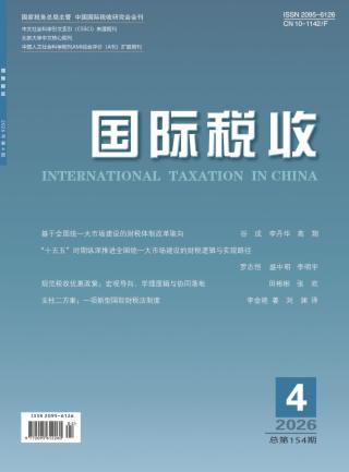 2026年 第4期 学习贯彻党的二十届四中全会精神 基于全国统一大市场建设的财税体制改革取向* 谷成 李丹华 高翔# “十五五”时期纵深推进全国统一大市场建设的财税逻辑与实现路径 罗志恒 盛中明 李明宇# 全国统一大市场建设与财税制度双向赋能:制度适配及路径优化* 胡天龙 陈晓晓# 规范税收优惠政策:宏观导向、学理逻辑与协同落地* 田彬彬 张欢# 跨境税收 支柱二方案:一项新型国际财税法制度* 李金艳#著 刘渊 译 研究探索 三次分配视域下税收赋能共同富裕的若干思考* 王丽 宋凤轩# 浅析数字贸易新业态下的税收问题和对策建议 陈正勋 谢紫灵 陈丽# 案例点评 遗产税税基评估实践:以迈克尔·杰克逊遗产税案为例* 张静静 刘逸民#